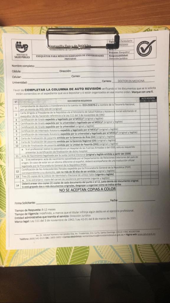 NOTA: Se demoran de 10-12 meses para entregar su Exequátur de Ley.